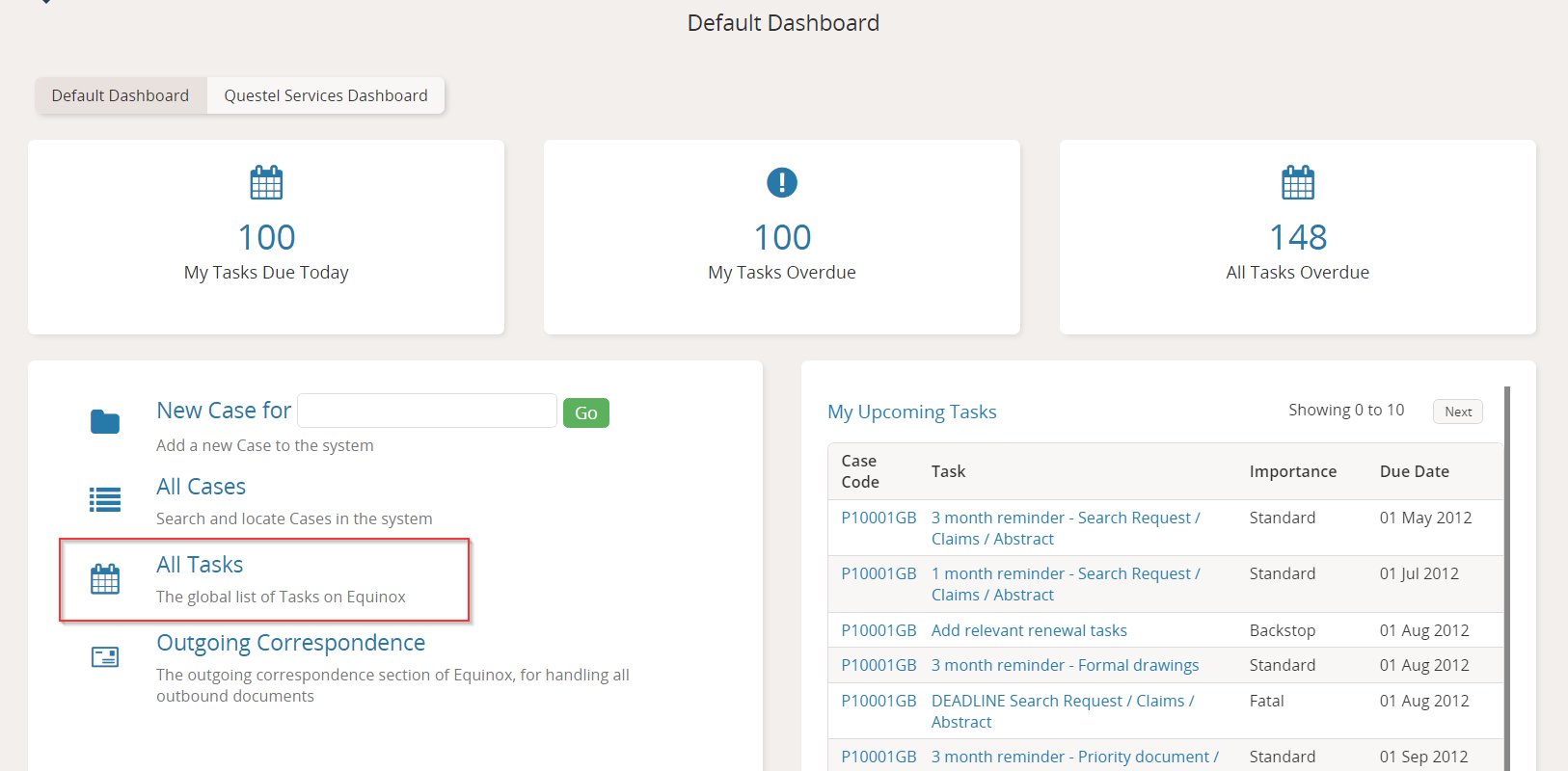 The 'All Tasks' link in the Navigation section of the left-hand menu