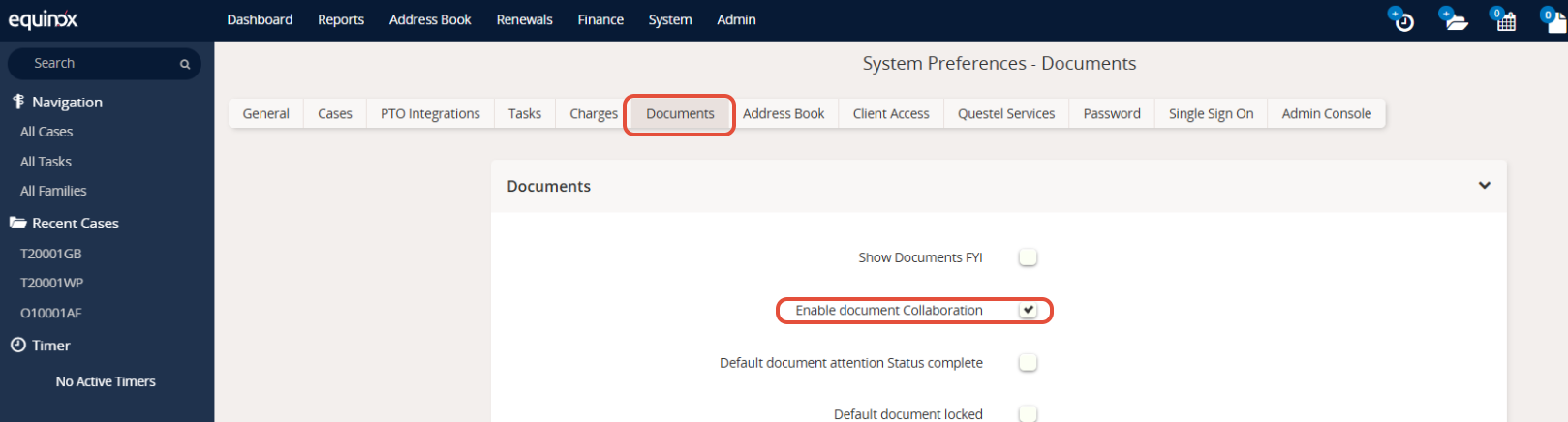The 'Enable Document Collaboration' is essential to setting up Document Collaboration.